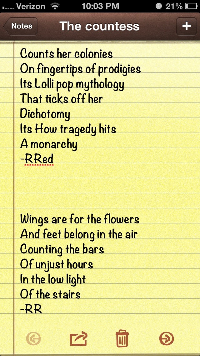 Next Previous Count Tess by R.RED March 6, 2014 Leave a comment For Fun, Poetry 28.495346 -81.526110 Share this: Click to share on X (Opens in new window) X Click to share on Facebook (Opens in new window) Facebook Like Loading... Related