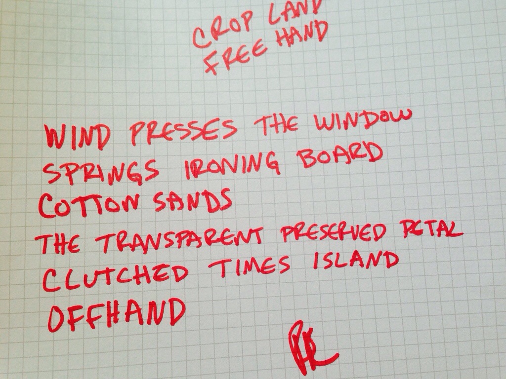 A window pane is springs ironing board, the landscape is pressing in and the “transparent petal” is smoothing it out. It is capturing a landscape of cotton fields and ironing them out in a manner of speaking. In Alabama “Upland”cotton is an abundant crop and is planted in March / April.